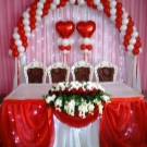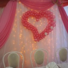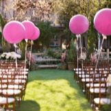 Successful decorations, including for a wedding banquet, will turn out if you use balloons. From them you can also make garlands or figures in the form of hearts, wedding dates. This design element is more suitable for decorating rooms, for example, a bride’s apartment, a banquet hall. On the street, it may not look so spectacular due to gusts of wind, rain and other adverse weather conditions.
