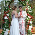 A real Russian wedding should be framed in red, yellow and black. All attributes should preferably be made of natural wood (the interior of the banquet hall, table, chairs and so on). Walls can be decorated with hand-embroidered towels, icons (including those having special material value), horseshoes. Wooden tables are decorated with tablecloths made from natural materials, such as linen. The tables themselves should be solid, stable, fairly wide. Instead of chairs, wooden benches are used.