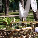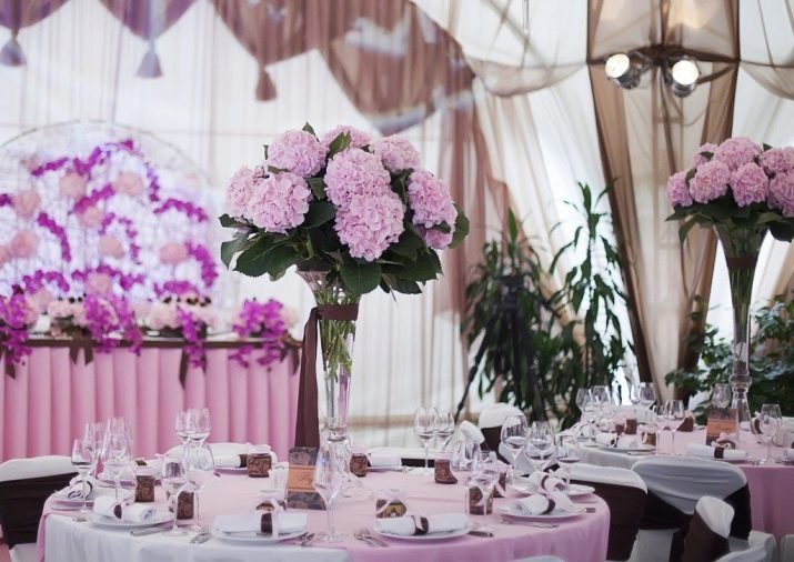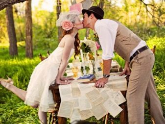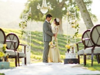 In the design of a banquet hall or a venue for a celebration in the open air, preference is given to natural shades and materials, meadow flowers. The general atmosphere should be cozy, delicate and romantic.