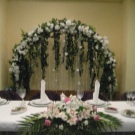 Flower arrangements can be placed not only on tables, but also in floor vases, on columns and arches. Selected varieties of flowers should not exude too strong aroma, otherwise the guests present may get a headache. If you plan to place flower arrangements on tables, you need to make sure that the buds are extremely fresh and the petals from them do not crumble. It is not recommended to decorate walls with flowers, since plants without water quickly lose their attractiveness. It is forbidden to decorate any festive dishes with fresh flowers, including cake, as dangerous chemical compounds used by flower growers to extend the life of cut flowers can get into them through food.