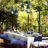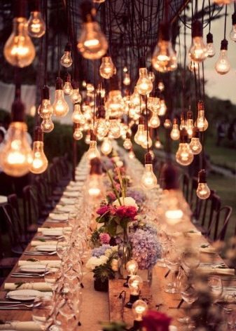 - If the wedding is held outdoors, then in the evening the garland from incandescent lamps will look very beautiful. They will have not only an aesthetic, but also a practical function.
