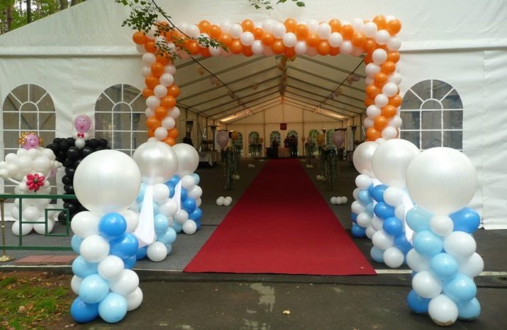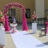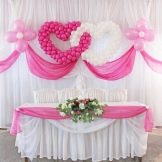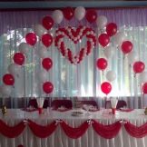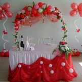 - The arches from the balls look beautiful and, framing the banquet hall on both sides, make it more comfortable. Having passed through the arch, the newlyweds, as if entering a new life, go to a new level of relationship.