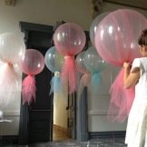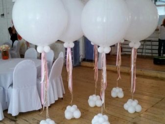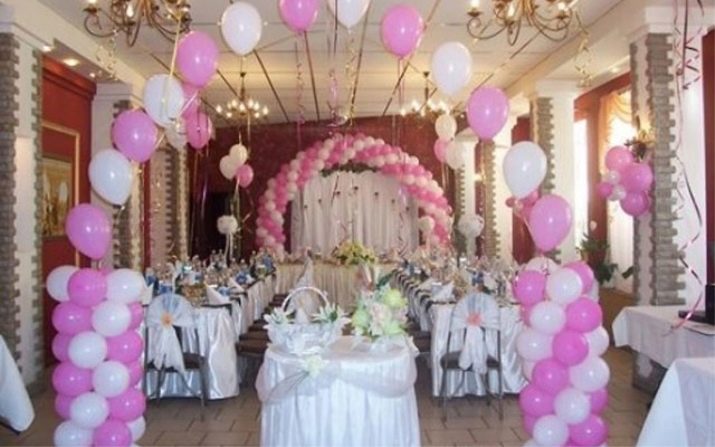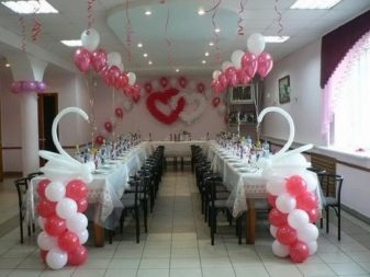 If you plan to decorate the room with balls, it is important to consider the color of the curtains and walls in the banquet hall. Balls should be combined with them in color. If you place the balls in a chaotic order in the room, it will look ugly, since there will be no harmony and harmony in the design. From balls it is better to create beautiful figures or even whole compositions. In some places you can use single balls.