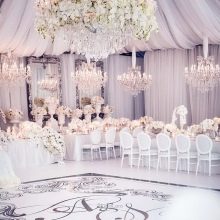 Before starting design work, it is best to draw up a plan where, what, and how it will be delivered and decorated. Then the decoration of the room will be distinguished by an integrated approach. The color scheme of the wedding will have to be correlated with the style and colors of the banquet hall. If your wishes and characteristics of the hall are contrary, it’s better to choose another place for the celebration, otherwise decorative “re-equipment” will be very expensive, and the result may not live up to expectations. Stylistically, the entire room, objects and the smallest details of the interior should be made in the same style. Delinquency will bring chaos and disharmony.