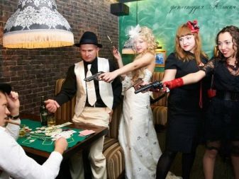 In order to reproduce the atmosphere of America at the beginning of the century at the celebration, the decor must meet the trends of minimalism.Furniture and surroundings should look rather rich. The decoration of the hall should include fresh flowers, monetary units and expensive cigars. But the different kinds of decorations that we used to see at a classic wedding (balls, lights from garlands) for this style will be superfluous.