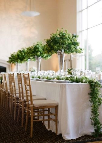 - The idea of decorating tables with a green garland and similar flower bouquets will not leave anyone indifferent.