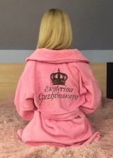 - Name bathrobes - A variant of the original, practical and interesting gift.Each time they will be wearing such robes, they will be able to recall the most solemn moments of life.