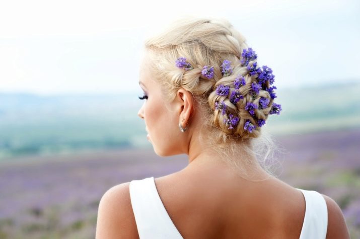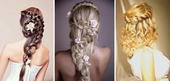 To give the image a unique and chic, it is recommended to decorate the strands with the help of flowers and special accessories. It is advisable to select them for a bouquet and decorations. For example, mother-of-pearl hoops with necklaces of silver and cubic zirconia look beautiful.An original solution will be a wreath of gems, it will be ideally combined with accessories with corundum.