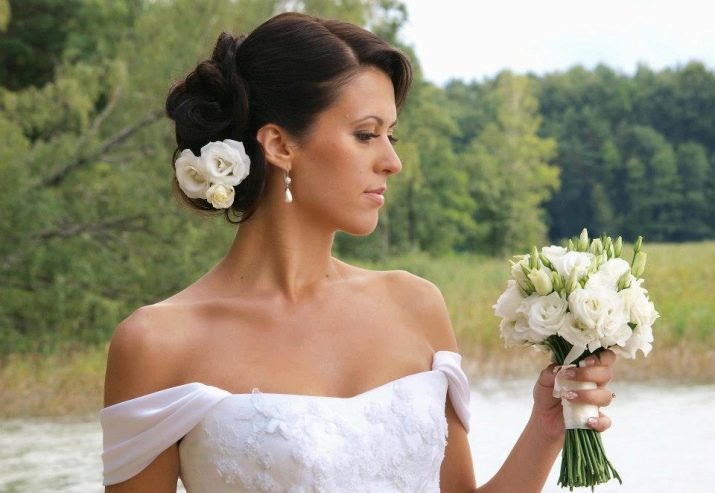 If styling is done in a classic style, it is important that the bride’s image contains a minimum number of accessories (for example, an elegant necklace or pearl earrings). If the outfit involves an abundance of details, then the hairstyle should be done with minimal decor. If you choose a concise dress and a small amount of jewelry, you can focus on the hair of the bride.