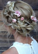 Then curl the hair in the direction from the ends to the back of the head in a not very tight tube and stab with hairpins in the lower part of the head. The hairstyle will look creative, possible and romantic. Whatever the styling for the girl, she should not only look good on her own, but also approach the oval of the face and the bow as a whole.