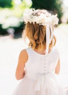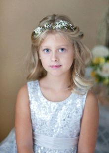 Thin silk or satin ribbons, small light hairpins, pearls are suitable for a young lady. The hair itself can be either loose or braided into unusual braids or ponytails. A thin wreath of small flowers looks good.