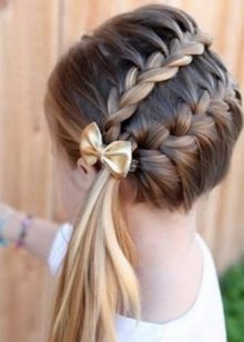 For a little girl, a few braids are also good. They can be braided not only from top to bottom, but also from the back of the head up or in a circle, as well as obliquely and in zigzags. Pigtails always look cute and appropriate.