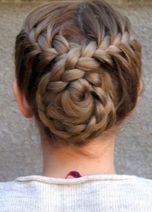 At this age, the girl already wants to stand out and emphasize her rich inner world. To do this, you need to turn to complex hairstyles. For example, you can braid several French braids with more loose weaving, lowering them closer to your face. The hair on the back of the head is left unused. At the base of the nape, weaving should be stopped by temporarily securing the braid tails with elastic bands. Screw the rest into small strands along with the ends of the braids.