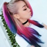 Kanekalon is an artificial synthetic strands that are similar in structure to natural hair. They are made on the basis of seaweed and dyes. In most cases, Kanekalon is represented by a bright color palette: pink, green, blue and red. Unnatural strands will make the hairstyle “impudent” in the good sense of the word and give your image a piquant “zest”. Also, kanekalon (if braided in a braid) gives the hair the desired volume and is able to adjust its length. It should be noted that the use of synthetic material is absolutely safe.