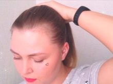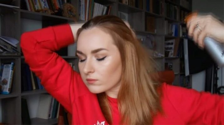 Carefully comb your hair and treat it with styling. We apply wax on the most naughty (it is better not to use the gel). We make a tail on top of the head, attach artificial (pre-combed) strands to it using invisibility and weave it in analogy with the “French” braid: divide the tail into two parts and start weaving (one strand should be hooked onto the other).