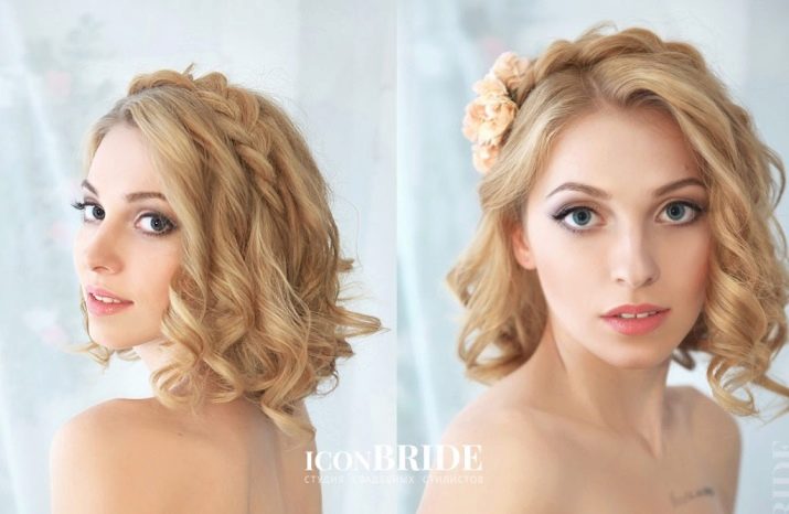 The easiest way, of course, is to choose a styling for a classic medium square. Most often, the bride curls curls, which become an excellent "base" for both a light feminine image, and for a bright and slightly provocative. Of course, preference is given to large waves - small ones themselves look very cheap and unnatural, and in a short haircut they can also change the shape of the face for the worse.