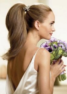 Earlier, many hairdressers claimed that a wedding hairstyle with a tail is a careless and lazy style, which is done instead of a real and beautiful styling. Time does not stand still, every year more and more cosmetics for hair care are being invented. Thanks to such cosmetics, beautiful accessories and imagination, a hairstyle with a tail no longer looks like a cheap replacement for an expensive styling. On the contrary, now such a hairstyle is becoming popular.