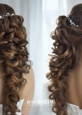 Hair in such a styling is beautiful both by itself and with the addition of small accessories. With such a hairstyle, the diadem is most popular, but a voluminous veil will not be the best companion. It is also worth thinking about choosing a dress. Loose hair, flowing to the back and shoulders, require the most open upper part of the dress.