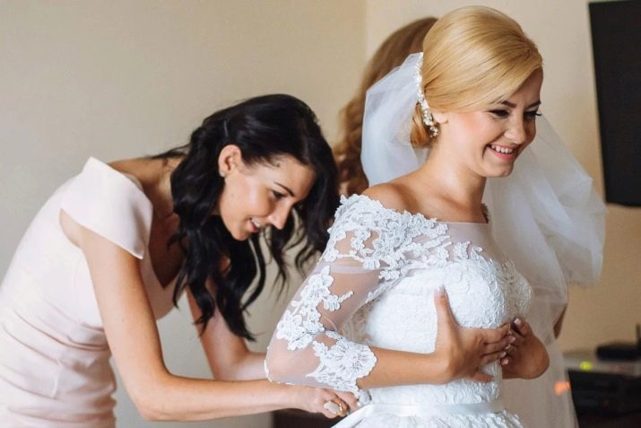An important sign concerns the fitting of the image of the bride and groom. Here, popular beliefs are categorical - donning the entire festive outfit entirely until the time of the wedding, and even more so to show off in this form in front of a large mirror is forbidden - then the wedding can simply fail. Of course, a girl should always be sure that she looks perfect, without trying on it is difficult for her to evaluate her style, but you can go for a little trick - try on your dress with a veil without any small accessory, for example, without a glove.