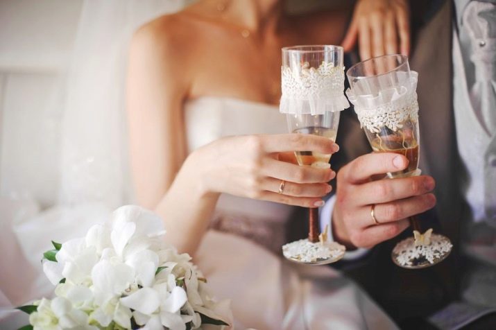 Of particular importance at the wedding are bottles of champagne, which are called "bulls" - These are two vessels that are connected by a tape. They should be kept the whole wedding so that none of the guests drank from them. The first is opened only at the chintz wedding, and the second - at the appearance of the long-awaited child. The bulls got such an interesting name from the customs of the southern regions of Russia, where the young were traditionally given a cow and a bull for the wedding. Such a gesture symbolized the beginning of joint farming, as well as the wishes of husband and wife fertility and the early appearance of the firstborn.