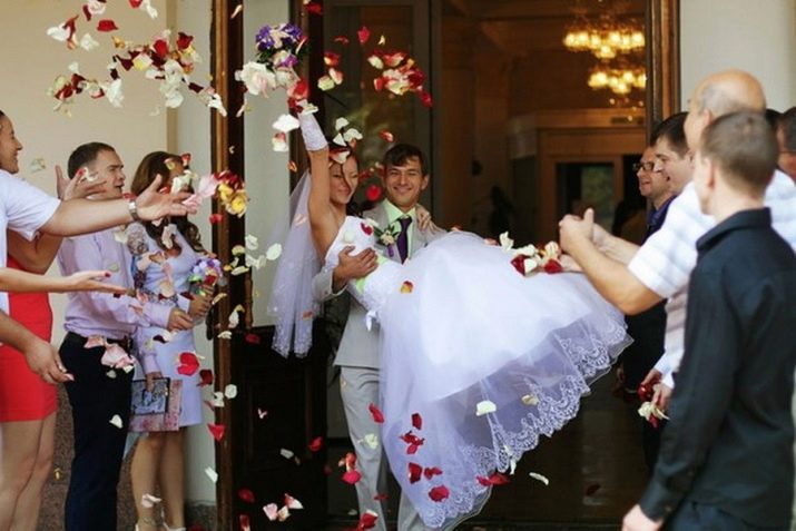 So that none of the guests jinx the girl at the wedding, it is worth making two or three stitches on the hem with blue threads. It is desirable to sew a dress in white. If you get married in a red outfit - this portends frequent conflicts. A green dress promises great financial difficulties, but a golden dress, on the contrary, marks a comfortable and luxurious life for spouses.Pay special attention to shoes - they must be closed, otherwise the family will literally be “barefoot” - that is, very poor, almost impoverished. No need to wear jewelry for registration, limit yourself to pearls or jewelry. Keep in mind that the jewelry that comes with the wedding dress should be old, best owned by a previously married woman, who took place as a happy wife and a worthy mother.