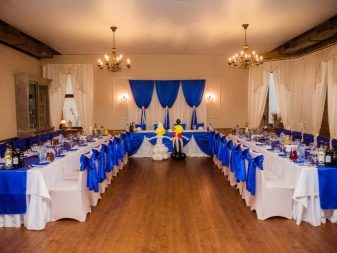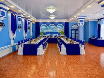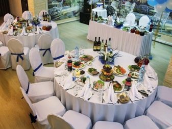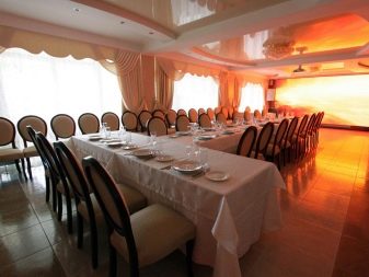 This is followed by European options for the arrangement of tables, which were quickly adopted by Russian restaurateurs and event organizers and began to be widely used for ceremonial banquets. The main feature of the European scheme is the presence of separate tables in the hall, acting as an alternative to the common table. This method is very convenient when seating people according to interests, age and degree of relationship.