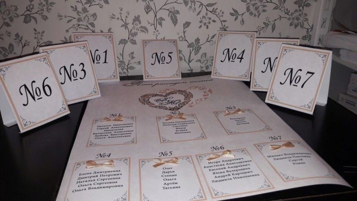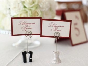- on one part, a figure cut out from colored paper with the number of the seat and table is glued, and on the other, the name of the guest is written in beautiful font;