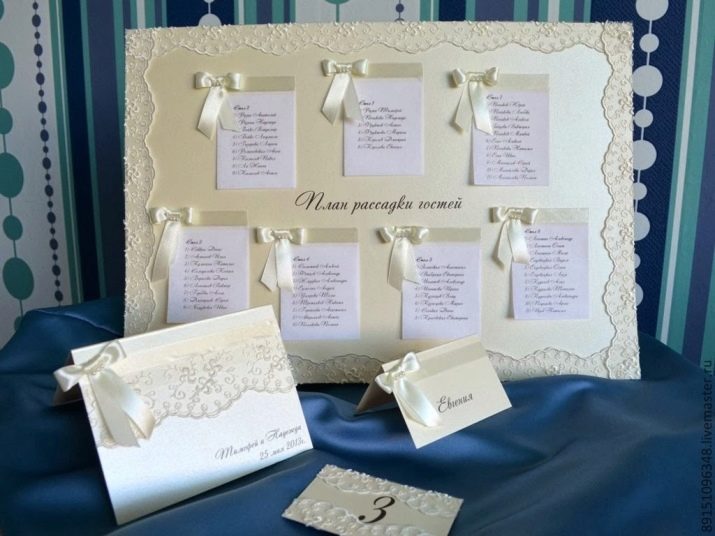 Before you begin planning your seating arrangements, you must write a complete list of guests and send them invitations. Once the answers are received, you can begin to draw up a plan. In order to prevent confusion when seating people, and everyone quickly finds their place, a colorful stand or an easel with an image of a seating plan is placed in the lobby of the banquet hall. Cards with the names of guests and with the number of the table and the place of boarding are attached to it.