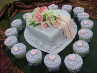 For example, cakes can be given a certain shape, for example, lay out a heart, pigeons, swans, or even the initials of the couple, and serve them on a beautiful tray or stand.