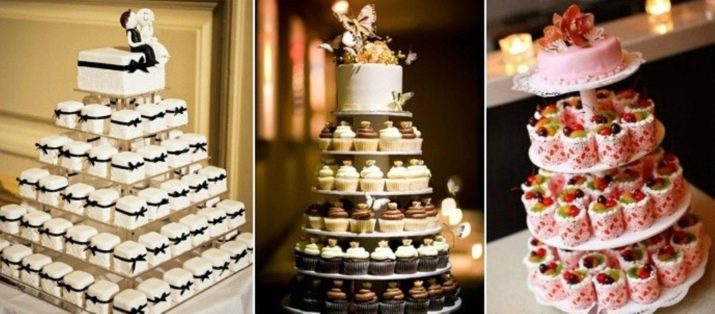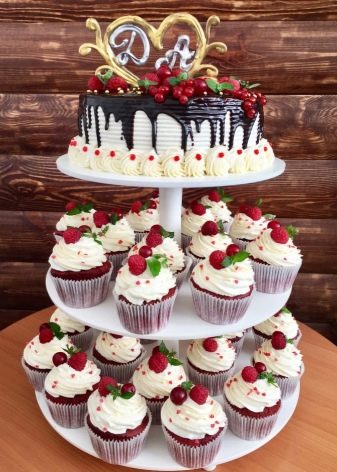- Simple delivery. A large number of individual cakes are much easier to move, for example, in order to send cupcakes from one place to another, it is enough to put them in boxes. A completely different situation is with a massive cake. It needs to be transported quite carefully, creating ideal conditions. Otherwise, the cake will be damaged and the whole banquet will be left without dessert, and the young couple will also be in a bad mood.