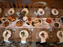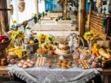 When young people want to completely recreate the atmosphere of a rural festival, they are advised to rent a spacious barn, arrange wooden cart wheels, small sheaves of hay, stumps, massive baskets of twigs, old instruments such as button accordion and gramophone, delicate tablecloths from "grandmother's supplies" and much another that adds to the surroundings of village life.