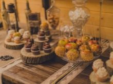 The menu for the summer wedding is characterized by an abundance of vegetables, fruits and berries. Often, modern rustic-style events are complemented by buffets, where snacks and drinks are freely available, and only bread and hot dishes are served at the refectory tables.At the reception desks, you can additionally beat the rustic atmosphere: serve apples in caramel, baked pies, corn, fresh kalach, and even jam and jam.