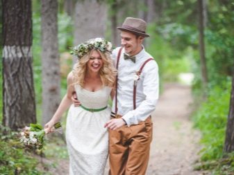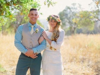 The image of the groom should also be approached carefully: rustic and country styles are characterized by a loose shirt and suspenders, as well as a small check waistcoat. From shoes you can choose oxfords or top siders.