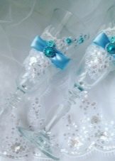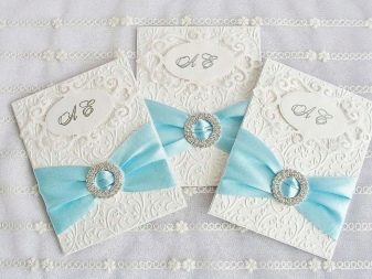 A great idea would be to make invitation cards yourself. To do this, it is recommended to use thick paper of any color, decorated with harmonious blue beads, beads and other decorative elements. You can do the opposite and prepare picturesque details of any shades on a blue background.