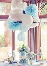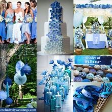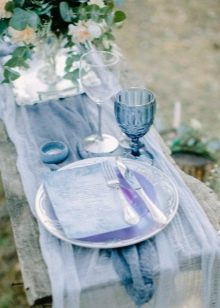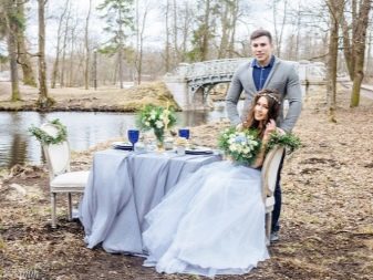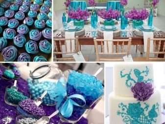 However, with this color it is worth showing accuracy. It is important to combine it with the right shades and not overdo it, otherwise the holiday will be filled with a feeling of cold, will cause passivity and apathy at a party. In addition, it is not necessary to use exclusively blue color, it can be different variations - heavenly, gray, dusty, blue and even purple shades.