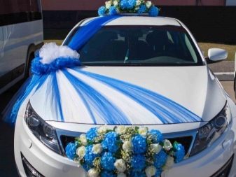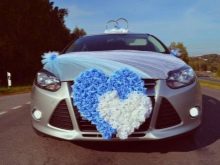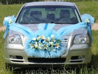 Otherwise, you can decorate the car with blue decorative elements. For example, on the case balls of heavenly shades, flowers, ribbons will look beautiful. You can familiarize yourself with one of the design options.