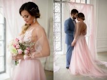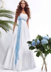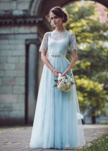 The bride dressed in a pale blue dress will also look spectacular. This color emphasizes the whiteness of the skin. On dark skin it is better to choose a dress of a more juicy blue color. If the bride wants to stay in a classic white dress, you can order a beautiful blue light waist belt, as well as decorate her hair with blue accessories. In the same shades, lace on a wedding dress or jewelry can be made.