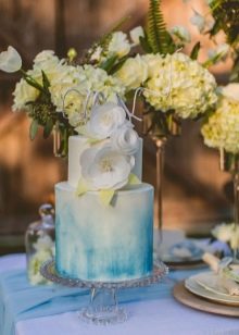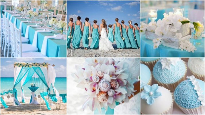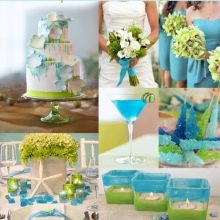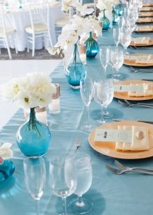 Blue is a deep pastel shade that is somewhat associated with cold. In order not to infect guests with a feeling of coolness, it is recommended to combine several colors in the design of the wedding. It is important to choose the right shade of blue - there are also several variations: these are tones with the inclusion of gray, violet or even green tint. Not all shades are in harmony with blue. The following options will be most successful.