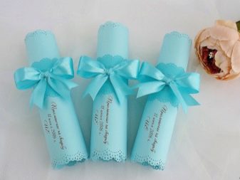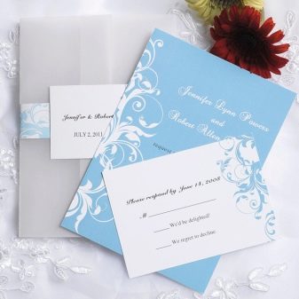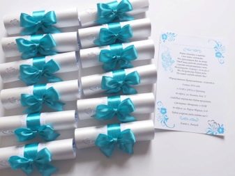 This element should also be given significant importance. You can order such invitation cards that all guests will definitely keep as a keepsake. These can be addressable products in the form of standard cards, or you can come up with something unusual, for example, present invitations in the form of a scroll tied with a beautiful blue ribbon. Handwork is more appreciated, therefore it is best to contact the hand-made master and order personal cards.