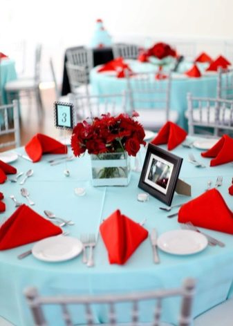 - Red. A bold and very expressive combination. One option is to combine blue, white and red colors and hold a sea party. Usually this theme is used in cases where the groom is a sailor.