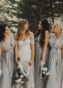 To make the wedding atmospheric and unusual, you need to pay attention not only to the images of the main characters, but also to other heroes of the event. Bridesmaids need to create a certain atmosphere for the hero of the occasion, so that against their background she looks dazzling. At the same time, outfits should be in harmony with each other.