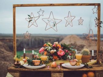 Usually the celebration takes place in unusual conditions. To celebrate such a wedding, you do not need to rent a huge banquet hall, to make the atmosphere solemn. Naturalness is what this style requires. It should be made as simple as possible. There are many different options that can appeal to any couple: a pleasant pastime on the beach, an outdoor event, a holiday in an old mansion - all this can leave behind vivid impressions and unforgettable emotions.