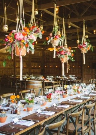 In autumn, the weather can be both successful and extremely cold. At this time of the year, a banquet can be arranged in a cozy restaurant or cafe with an open veranda. The interior of the room should be made in a rustic style or immersed in a flower garden. A good option is a house in the country, similar to a tavern, around which there are many lawns and plants (bushes, trees).