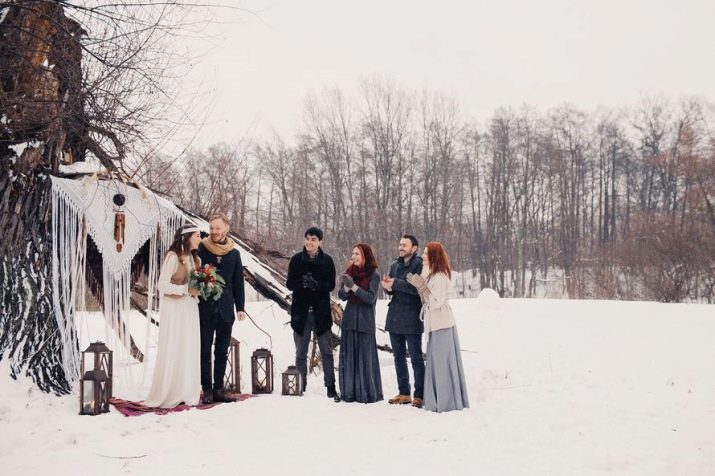 Weather conditions are not a problem for two loving hearts, so wedding events are organized both in the summer and in the winter. It is important to remember the features of a boho style wedding in order to create the perfect celebration by using a frosty day or leaf fall as another atmospheric addition.
