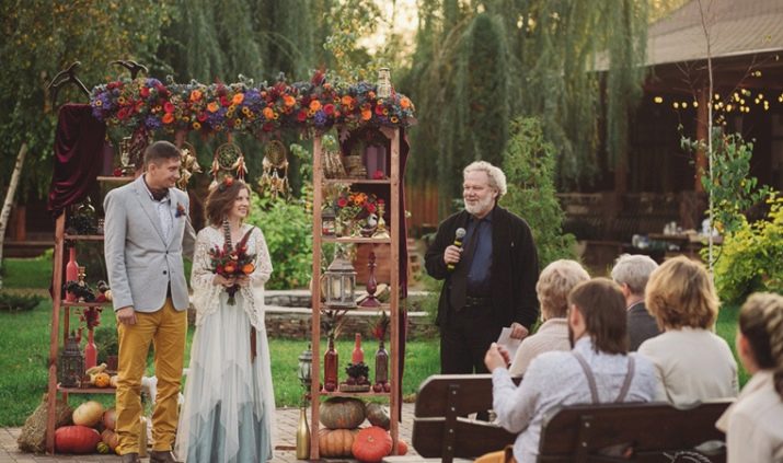 He should immerse as much as possible future spouses and their guests in the creative style. You should consider all, even the smallest aspects of design, menu, images of the newlyweds and everyone present. That is why preparation for such an event involves the elaboration of the script and notifying guests about a certain dress code.