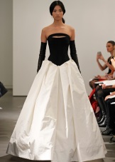 An excellent designer invention was the model of wedding dresses, consisting separately of a corset and a skirt. On the bride, such a set looks like a full-fledged dress. In such a wedding dress, the girl will feel much more comfortable during the celebration, as the voluminous skirt will not weigh down the upper part and pull the yoke down.