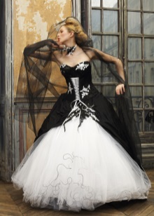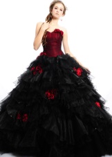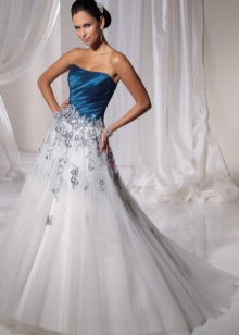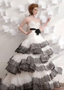 The best solution for those who opted for a traditional wedding dress, but want to add originality to it, can be decorative elements of a different color. This can be a tied belt, trim on the bottom of the dress or colored elements on the corset. But in this case, the color scheme should be selected for the suit of the groom and the overall decoration of the wedding celebration.