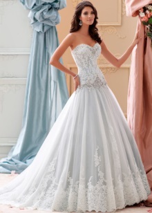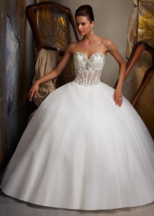 A preliminary fitting will help you choose the right pattern on a transparent corset, which advantageously emphasizes the figure of the girl. Such a corset, embroidered with rhinestones, pearls and stones, will make the image of the bride dazzling in a literal and figurative sense. Delicate lace, in turn, will add femininity and romance to the wedding dress.
