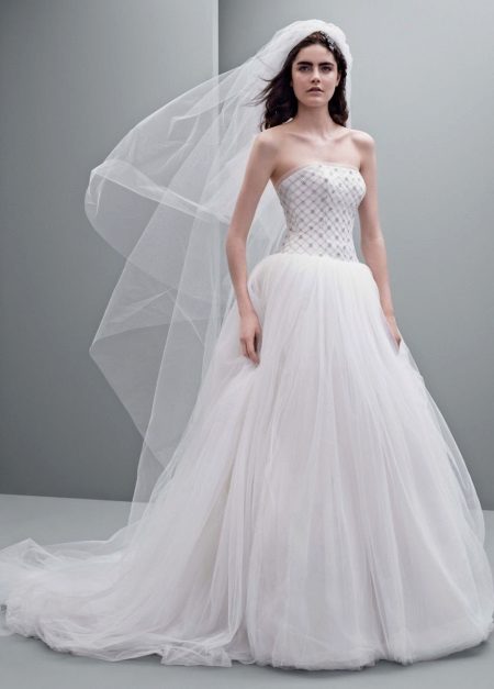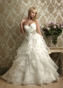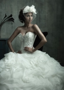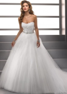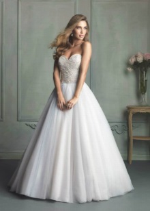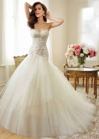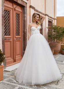 The most popular and favorite version of a wedding dress with a dense upper part are puffy dresses. Indeed, for girls, the wedding day seems somehow magical, and therefore they themselves want to look like a princess from a fairy tale.