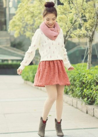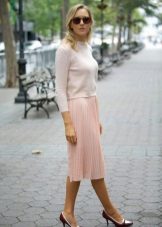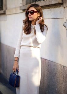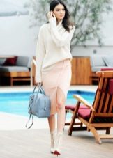 It can be any beautiful skirt made in pastel colors. A combination of a knit sweater and a light airy chiffon skirt looks especially stylish. Girls who want to show off their figure can choose a cropped pencil skirt.